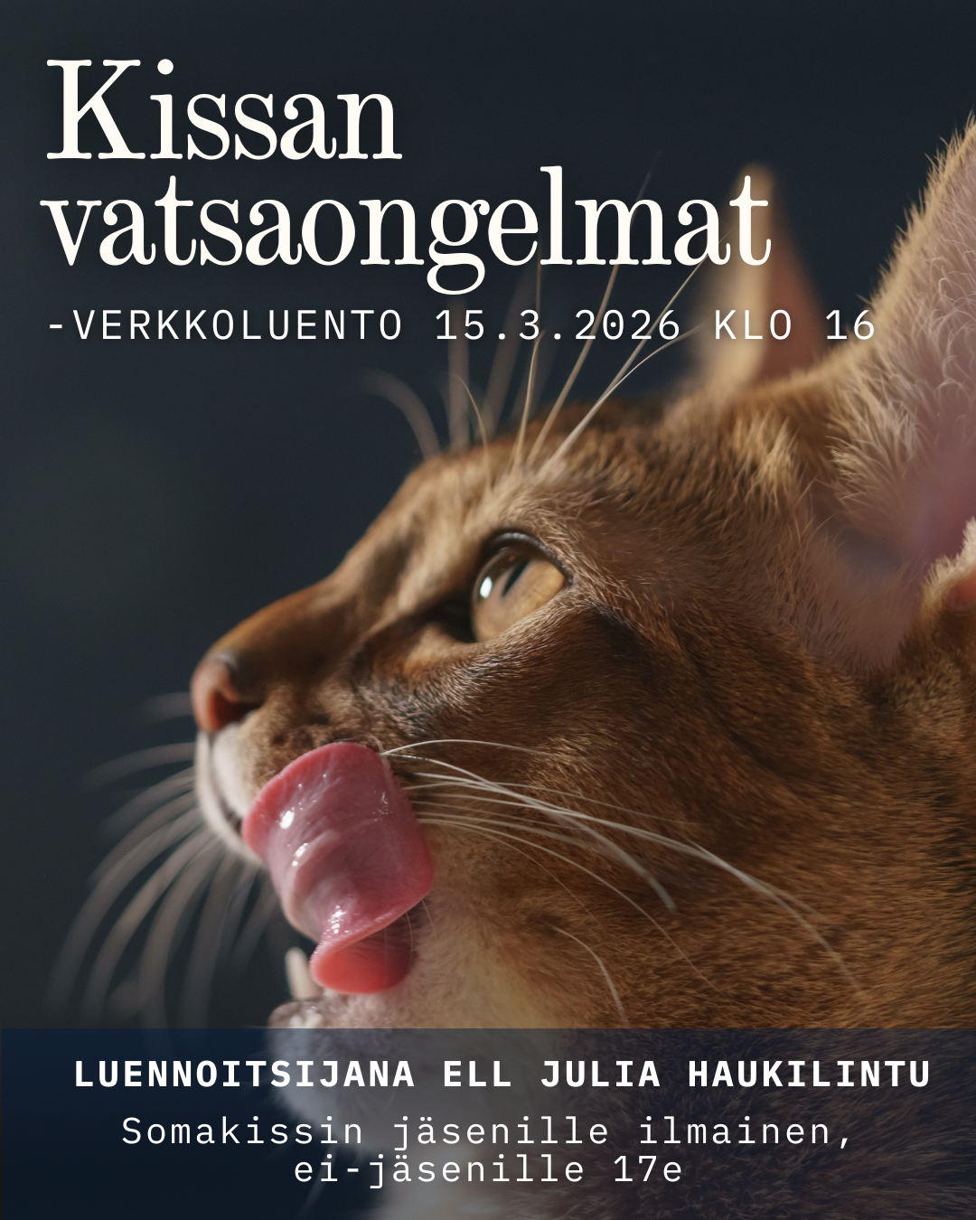 Kissan vatsaongelmat -verkkoluento 15.3.2026